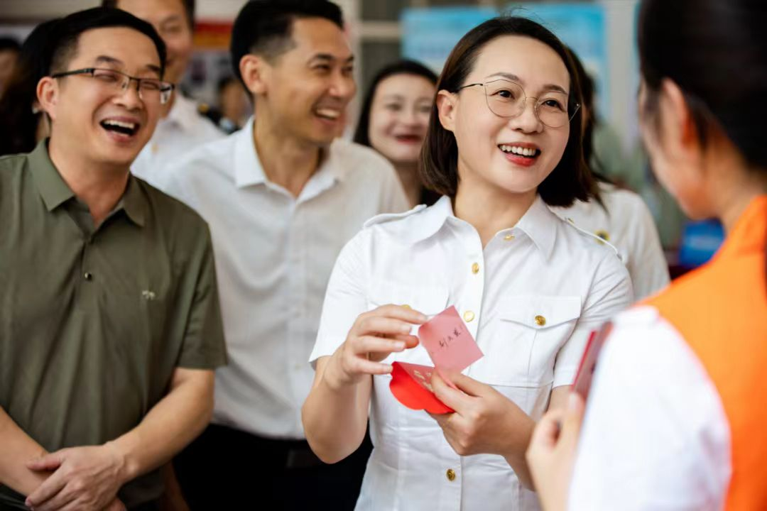 在学院全体领导和老师的精心组织下,迎新工作井然有序。志愿者们热情参与,为远道而来的新生和家长提供周到的指引和帮助。学院特别为每位新生准备了寓意美好的"幸运袋",传递温暖与祝福。陶韶菁书记特别参与了抽幸运袋互动环节,与新生共同抽取幸运礼物并合影留念,现场洋溢着欢声笑语,情意融融。