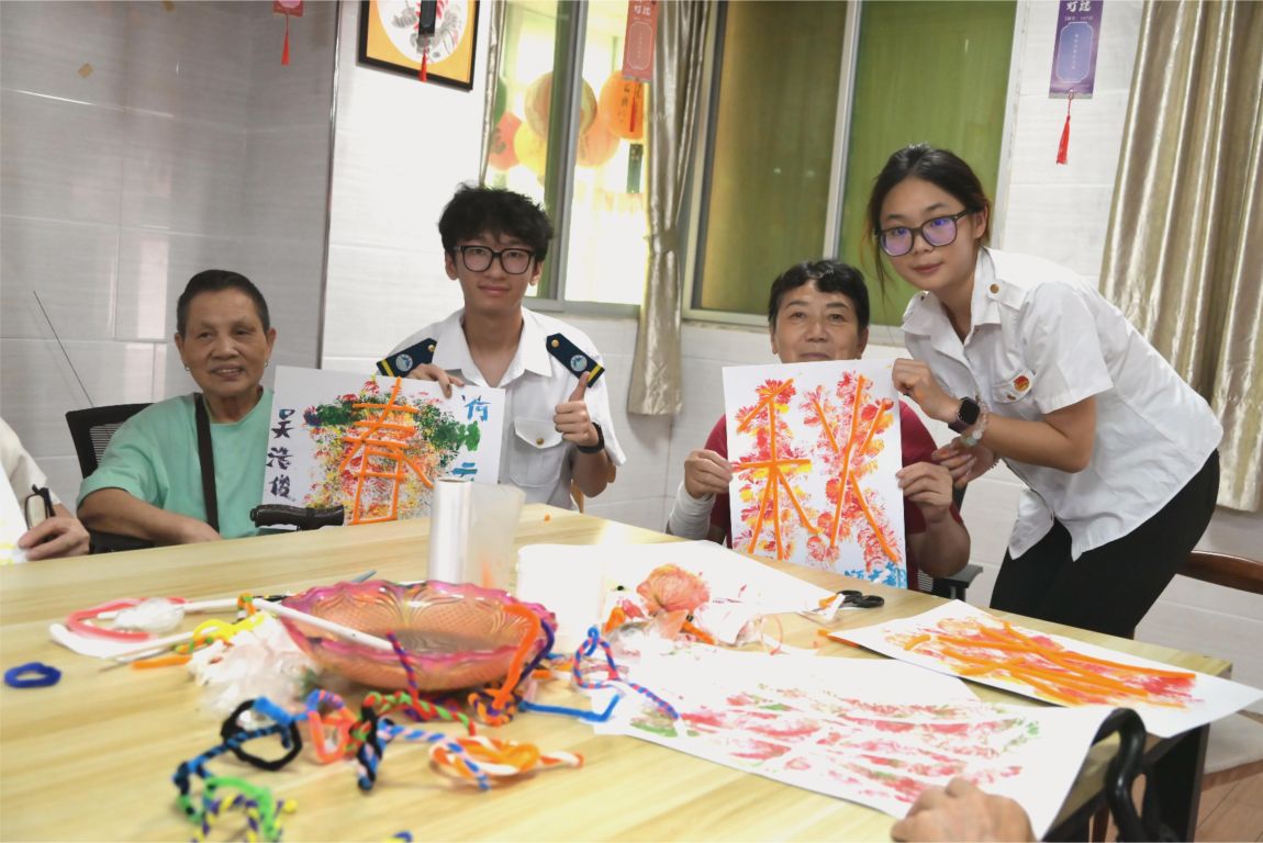 “保鲜袋拓印秋天”活动更是别开生面。同学们与老人一起,将蘸取各色颜料的保鲜袋作为画笔,在画纸上尽情拓印。一幅幅充满抽象美感和想象力的画作,不仅留住了秋天的色彩,更印下了老少同乐的温馨瞬间。活动尾声,一声声关切的问候,一句句温暖的祝福,打破了年龄的隔阂,整个敬老院都沉浸在爱的暖流中。