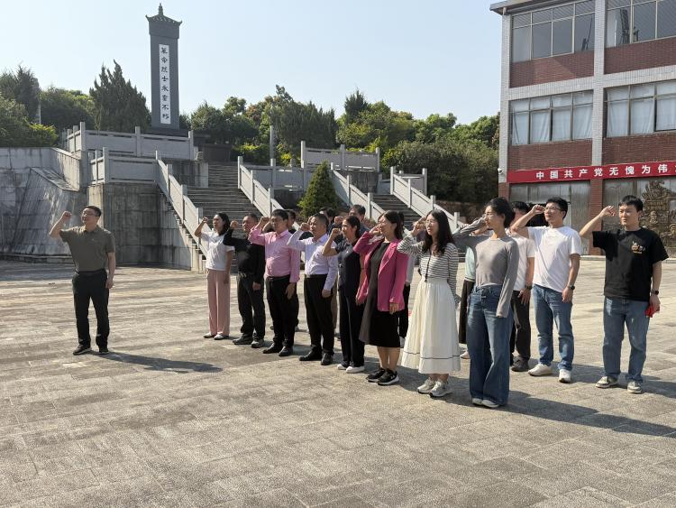 在爱国主义教育基地,面对鲜红的中国共产党党旗,全体党员庄严举起右拳,重温入党誓词。铿锵有力的誓言掷地有声,进一步坚定了全体党员不忘初心、牢记使命的政治信念,强化了为党育人、为国育才的使命担当。