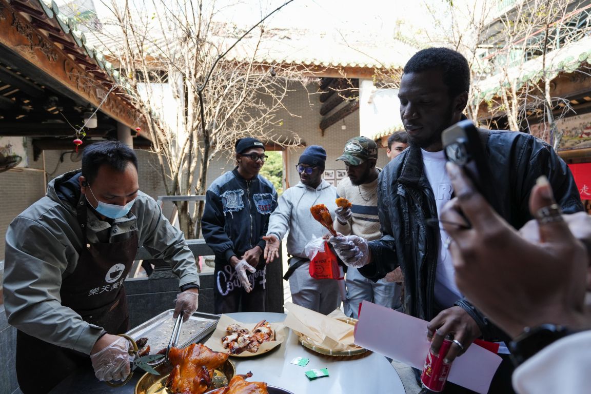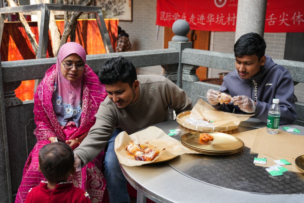 中午时分,中外宾朋共聚一堂,品尝地道烧窑鸡。席间,“新年快乐”“马年吉祥”的祝福声此起彼伏,多种语言交汇激荡,传递出同样真挚美好的祝愿。这场别开生面的民俗体验活动,让华坑村弥漫起浓郁而独特的“国际年味”,通过亲手参与、沉浸体验,留学生们不仅深入感知了中国传统文化的深厚底蕴,也在互动交流中进一步凝聚了情感、加深了友谊。活动以温暖而鲜活的方式,向世界生动展现了中国传统文化的时代魅力,让文明互鉴、文化交融的动人画卷,在华坑村的阳光下徐徐铺展。