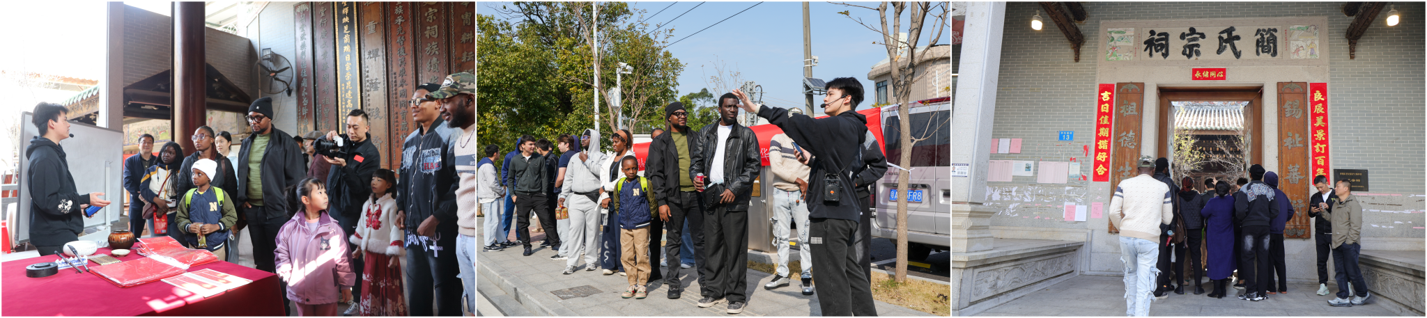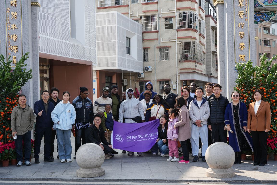 踏入华坑村,青砖灰瓦间年味扑面而来。在村民的热情引导下,学生们走进历史悠久的祠堂,细听从“腊月备年”到“元宵收尾”的完整春节习俗讲解。一项项仪式、一段段故事,生动展现了广府春节所蕴含的敬祖孝亲、家庭团圆以及邻里和睦的文化内涵,让留学生们深切体会到中华文明慎终追远、天人和谐的精神。